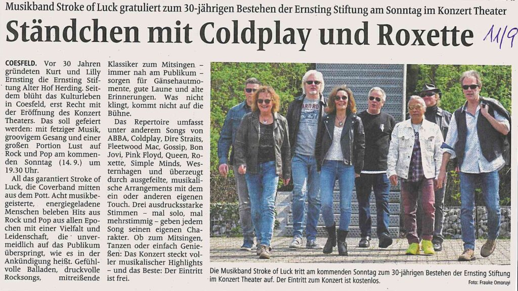 Infos zu unseren Auftritten 14 Sep 2025 Coesfeld Nähere Infos 24. Mai 2025 GelsenkirchenBegegnungsstätte Haverkamp Abgesagt Ersatztermin:Bekanntgabe demnächst Eintritt 13. Feb 2025 CoesfeldKonzert Theater Coesfeld Osterwicker Str. 31 Nicht öffentliche Veranstaltung. Nähere Infos 25. Aug 2024 MarlHof FeulerLinder Weg 44 Eintritt frei 20. Mai 2024 HertenKunstmarkt Eintritt frei 27. April 2024 GelsenkirchenBegegnungsstätte Haverkamp Eintritt 10 € Ausverkauft! 03. Feb 2024 Privatveranstaltung Privat 25. Nov 2023 Privatveranstaltung Privat 19. Aug 2023 GelsenkirchenSchacht 3 Open AirMit den Voice Toys Eintritt 12 € Ausverkauft! 17. Jun 2023 Privatveranstaltung Privat 21. Aug 2022 MarlHof FeulerLinder Weg 44 Eintritt frei 31. Jul 2022 Privatveranstaltung Privat 4. Jun 2022 GelsenkirchenBegegnungsstätte Haverkamp Eintritt 8 € Ausverkauft! 29. Mai 2022 Privatveranstaltung Privat 14. Sep 2019 Privatveranstaltung Privat 7. Jul 2019 Marl Hof Feuler Linder Weg 44 Eintritt frei 19. Jun 2019 MarlBiergartenBachackerweg 128 Eintritt frei 18. März 2017 Privatveranstaltung Privat Impressum Datenschutz Facebook